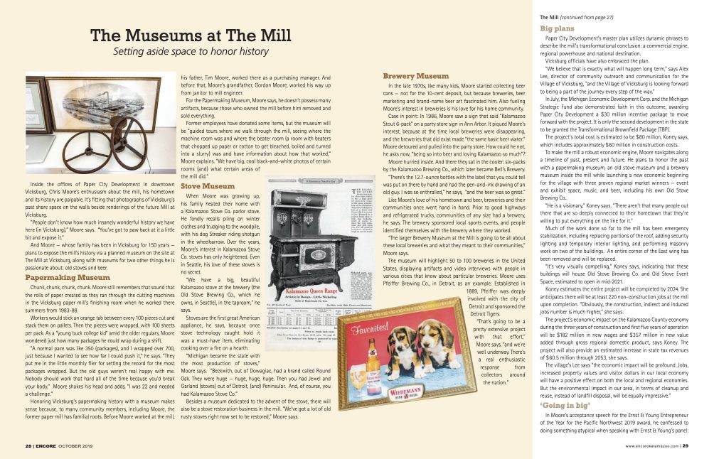 The Museums at the Mill will pay homage to Vicksburg’s rich history and that of its surrounding communities. From The Mill’s origin in paper making to beer and brewery memorabilia to the old stoves that made Kalamazoo famous, big plans are in the works to dedicate space at The Mill to each of these traditions. Read more about the future of The Mill museums and the rich history of a village and a mill all captured in artifacts in Encore Magazine.