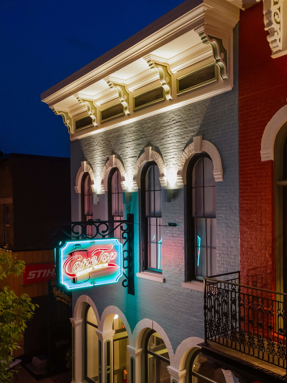 Serving as The Cone Top Brewery Museum’s temporary home, this refurbished space blended history, craftsmanship and restored architecture to create a memorable conclusion to the tour. Inside, visitors encountered a mix of history and working craft: a period bar anchored the room, while nearby stood the Vicksburg outpost of Butler Gold, the sign painting and design studio of David Butler.