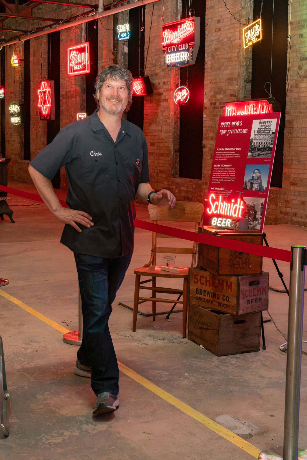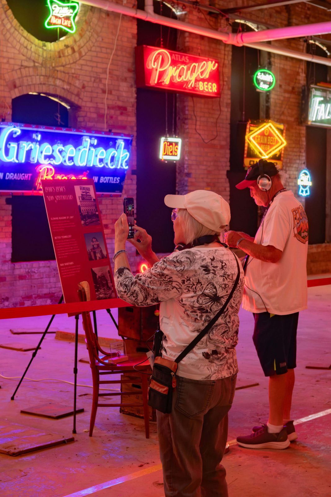 Through careful restoration and expert curation, they glowed once again, filling the space with vibrant color, hand-bent glass and the quiet hum of electricity. Neon Mike Lacroix, with guidance from NABA members, led the restoration to ensure each piece reflects its original character.