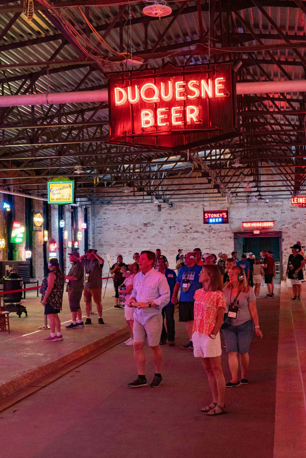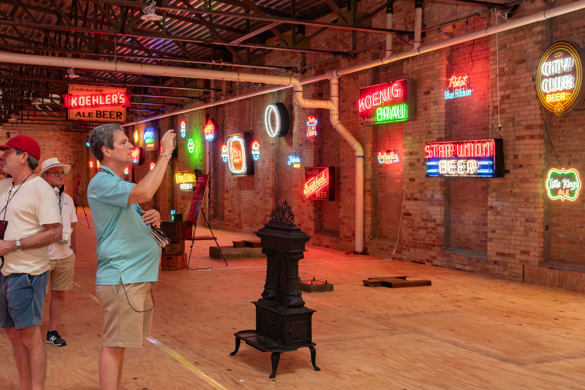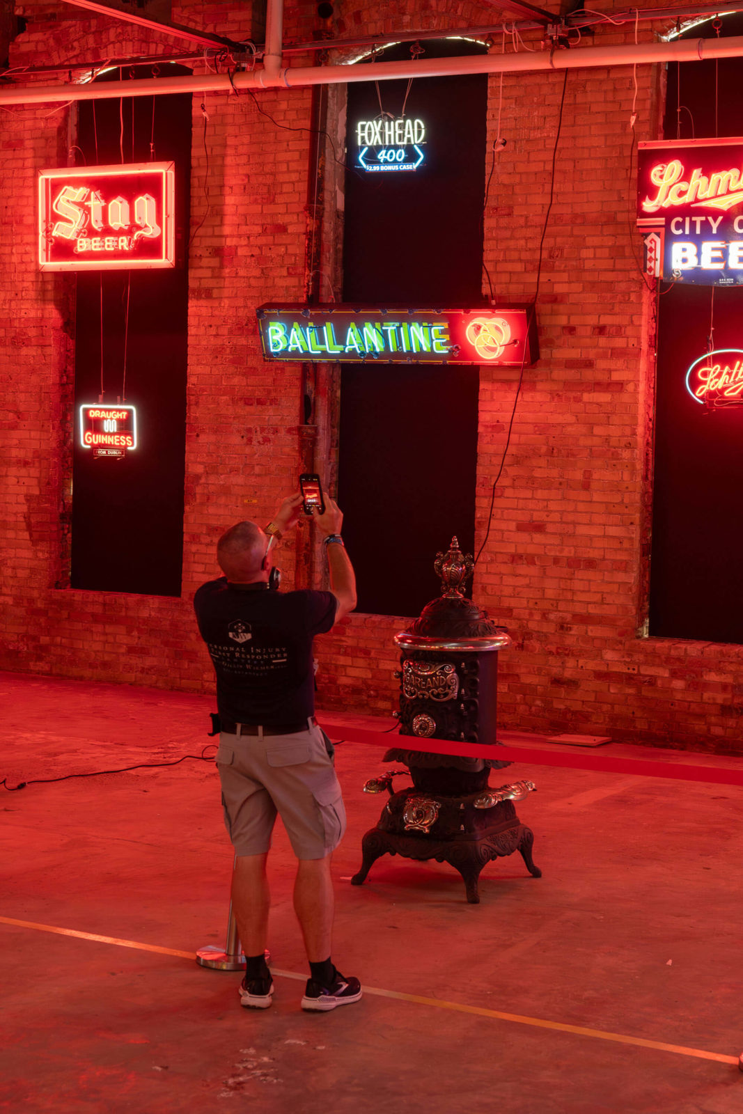 The Large-Scale Signs exhibit showcased towering, original beer signs that had once stood atop rooftops, taverns and main streets across the country. Displayed in their original state, they carried the wear and patina of time, standing as relics from an era that believed in advertising on a grand scale.
